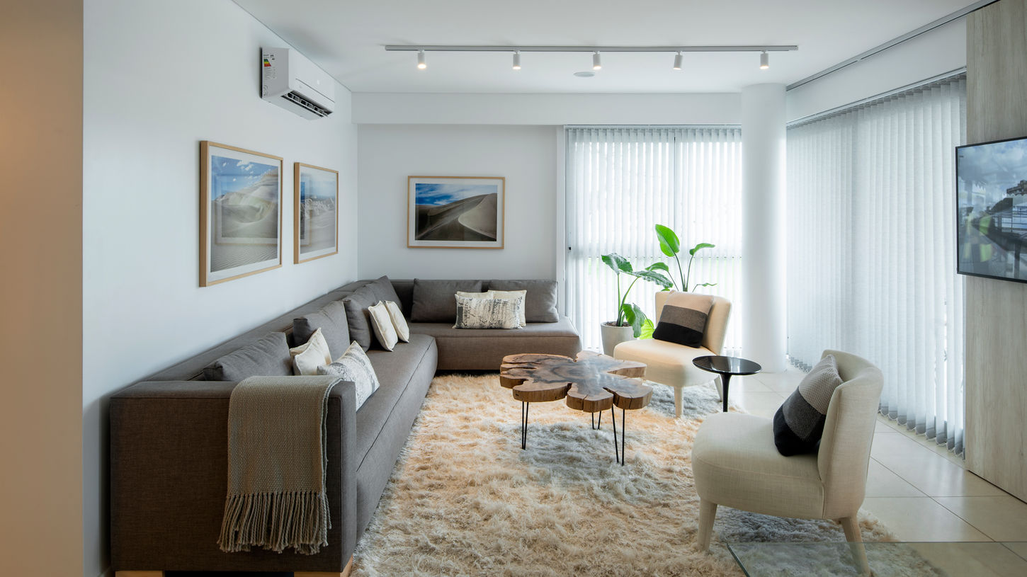 En Mil Aires tuvimos que resolver dos temas fundamentales, generar la sensación que voy a sentir viviendo en Mil Aires en cada ambiente del showroom y además posicionar en Buenos Aires a una empresa cuya base está en Córdoba y desarrolla proyectos en el resto del país. El objetivo fue logrado ya que al recorrer la sucesión de espacios que conforman el showroom me siento en casa, siento alegría, frescura, calidez. El departamento modelo se vuelve un hogar con la calidez de sus muebles en madera, paredes con empapelados que me llevan a la naturaleza y expanden mis horizontes y una iluminación envolvente que me hace sentir en un nido.